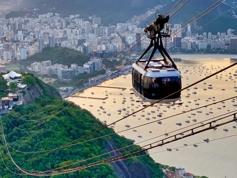 Sugar Loaf Mountain (Pão de Açúcar): Standing high above Rio's bustling metropolis at 1,299 feet, Sugar Loaf Mountain cascades over the picturesque Guanabara Bay. From Praia Vermelha in the residential Urca district, you can take a three-minute cable car ride up to Morro da Urca and then hop on another cable car up to the top of Sugar Loaf. From the glass-enclosed bondi (tram), you'll get a dazzling view of the city.