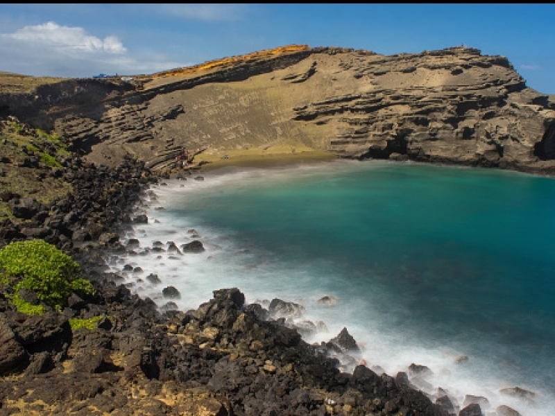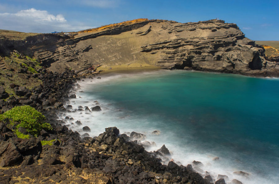 In the native language, Papakolea means golden plover plains in honor of a bird that spends the winters in these latitudes the extreme south of the island of Hawaii- and migrates during the summer to the coasts of Alaska, since its diet is based on of small insects and crustaceans that are only in that area. Seen from above, the sand appears to be tinted an olive-colored tint, but if you go down to the spot and look closely, you will realize that the space is actually covered in a multitude of green crystals.It is olivine - an abundant mineral in Hawaii that is often found within lava compounds - although tiny pieces of coral and dried lava fragments also appear in this mixture. The reason green crystals prevail is that, being denser than other materials, they are not as prone to being swept away by the shrinking force of waves. This is no coincidence, since this brilliant olivine surface is located at the foot of the Pu'u Mahana volcano, a cinder cone that formed at least 49,000 years ago, although scientists do not rule out that its origin is as remote as 150 millennia.
