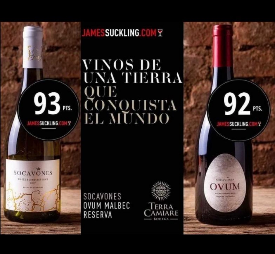 Terra Camiare winery, located in the town of Colonia Caroya, received a high score from the American critic James Suckling in two of its wines: Socavones Reserva Ovum 2017 (92 points) and Socavones Reserva White Blend (93 points), and returned to position Córdoba internationally with its products.